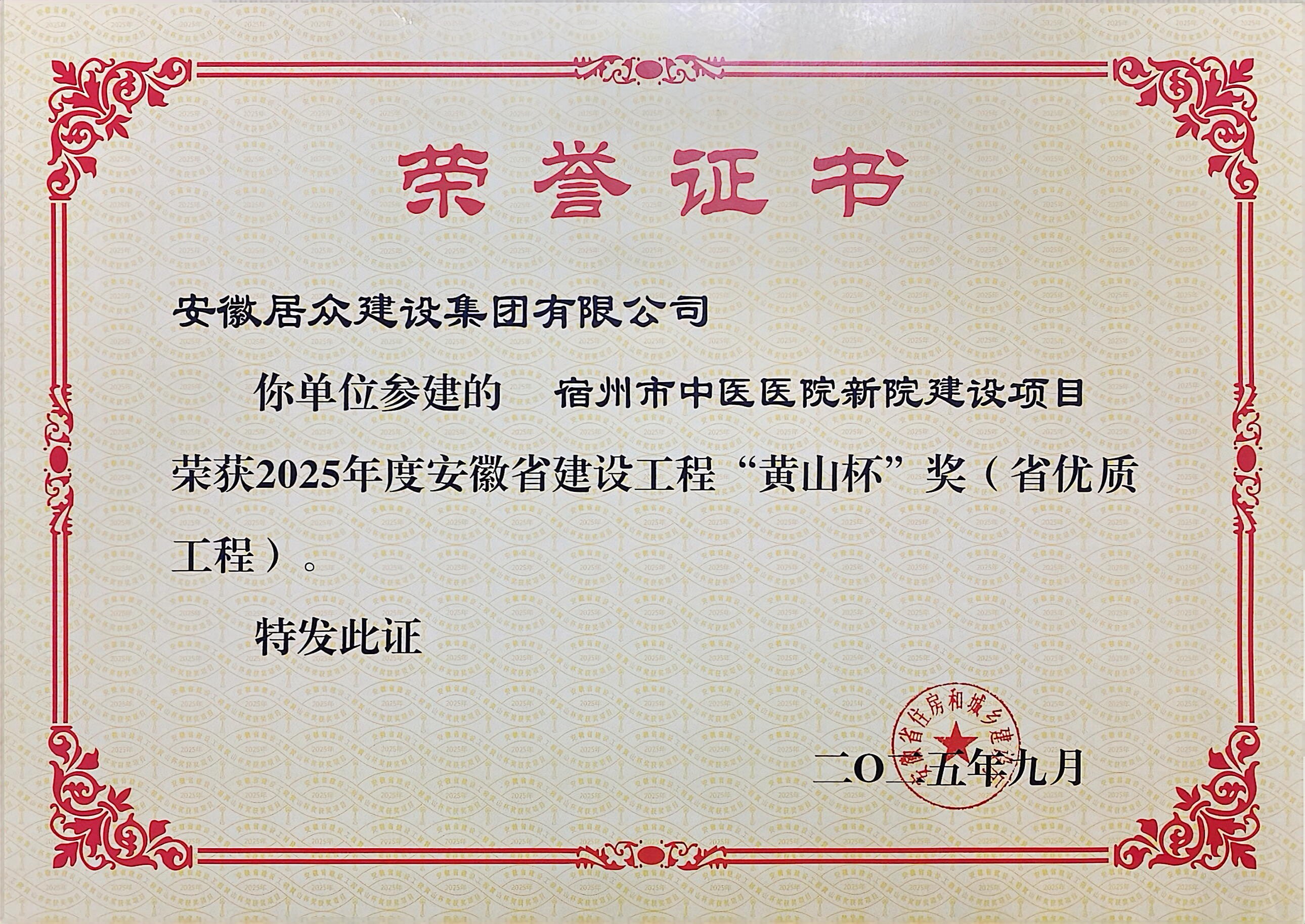 2025年度安徽省“黄山杯”奖